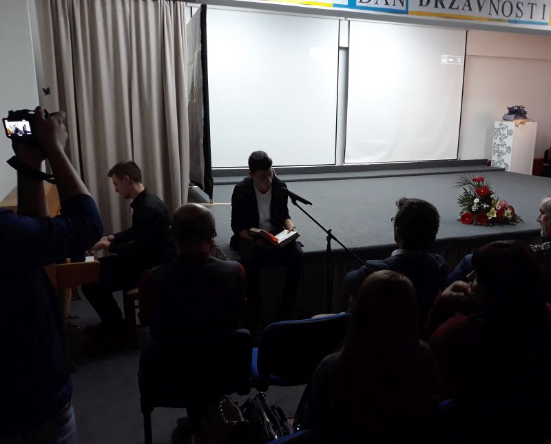 Stihove Moja i tvoja domovina, pjesnika Saliha Čakića slušali smo u interpretaciji Zdenke Nikolić, nakon čega je uslijedio igrokaz iz romana Tvrđava, pisca Meše Selimovića, a u izvedbi učenika dramske sekcije.