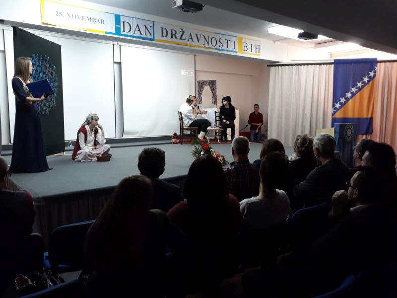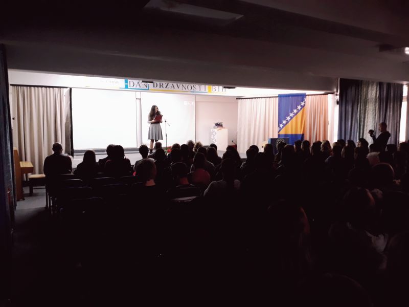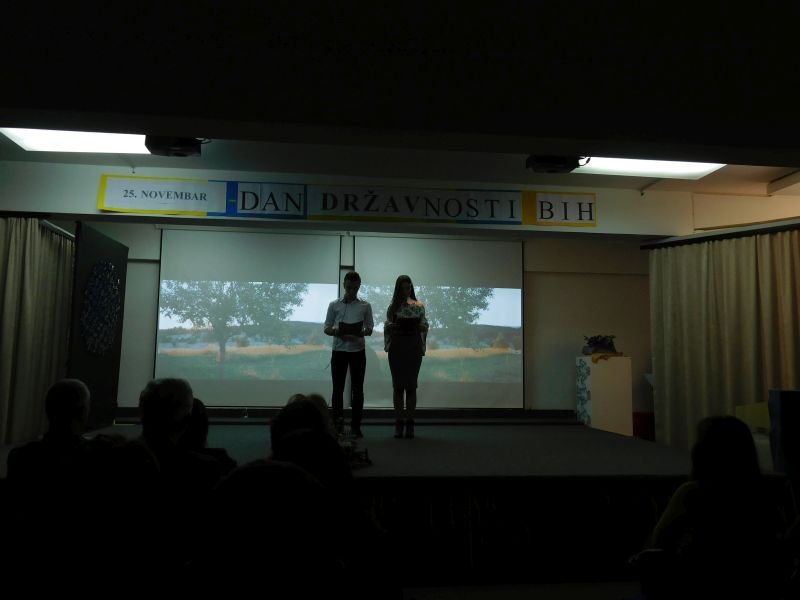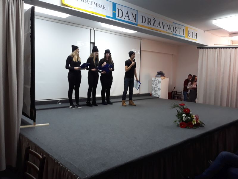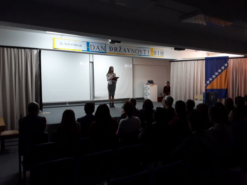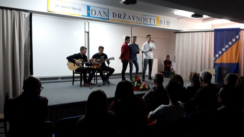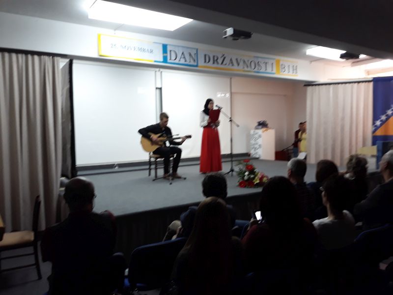 U petak 24.11.2017.godine, u amfiteatru naše škole, održana je priredba povodom proslave Dana državnosti Bosne i Hercegovine. Naši učenici i profesori su imali priliku pratiti prigodan svečani program sa tematikom Dana državnosti, organiziranog uz pomoć Vijeća učenika, sekcija, pedagoga i direktora škole.